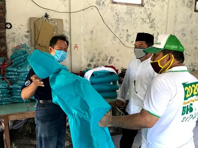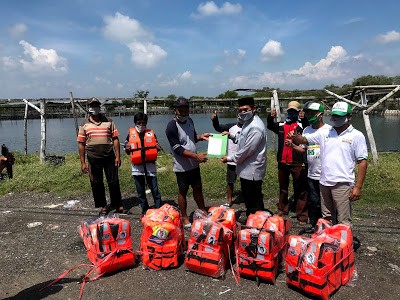 Bambang Haryo Soekartono (BHS) membagikan life jacket dan masker didaerah Kalanganyar, Kecamatan Sedati, Sidoarjo. Pe..........