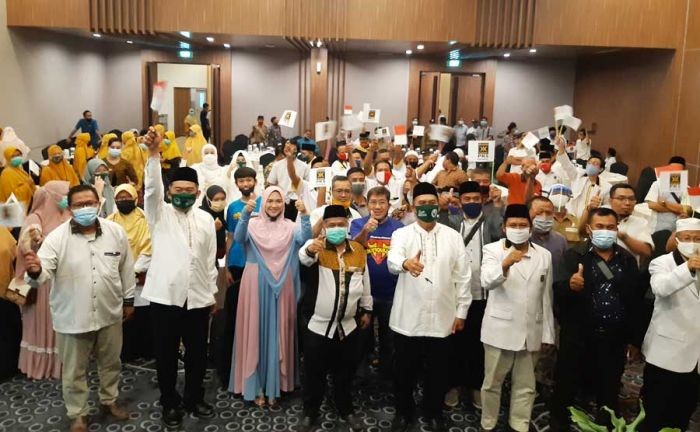 Ratusan kiai dan habaib dari 18 kecamatan di Kabupatren Sidoarjo, Jumat (25/9/2020) sore, bertemu paslon nomor urut 1..........